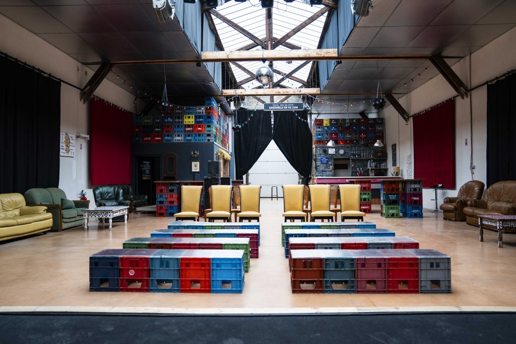 -C’est un lieu culturel et créatif, une aventure collective pour expérimenter et réinventer le territoire. L’idée de départ était de faire se rencontrer l’inventivité, la culture et l’engagement citoyen au sein d’un espace atypique et modulable. Concrètement, ça veut dire des concerts, des spectacles, du théâtre, du Comédie Club, des expos, mais aussi des marchés aux puces, des thés dansants, du coworking et tout ce qui peut induire de la création et des échanges. On a ouvert le 5 octobre 2024 et, dès la phase de lancement, on a organisé une dizaine de soirées…